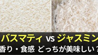 バスマティライスとジャスミンライスの違いを解説。香り・食感・炊き方・料理との相性を分かりやすく比較し、それぞれの特徴やおすすめの使い方を紹介します。