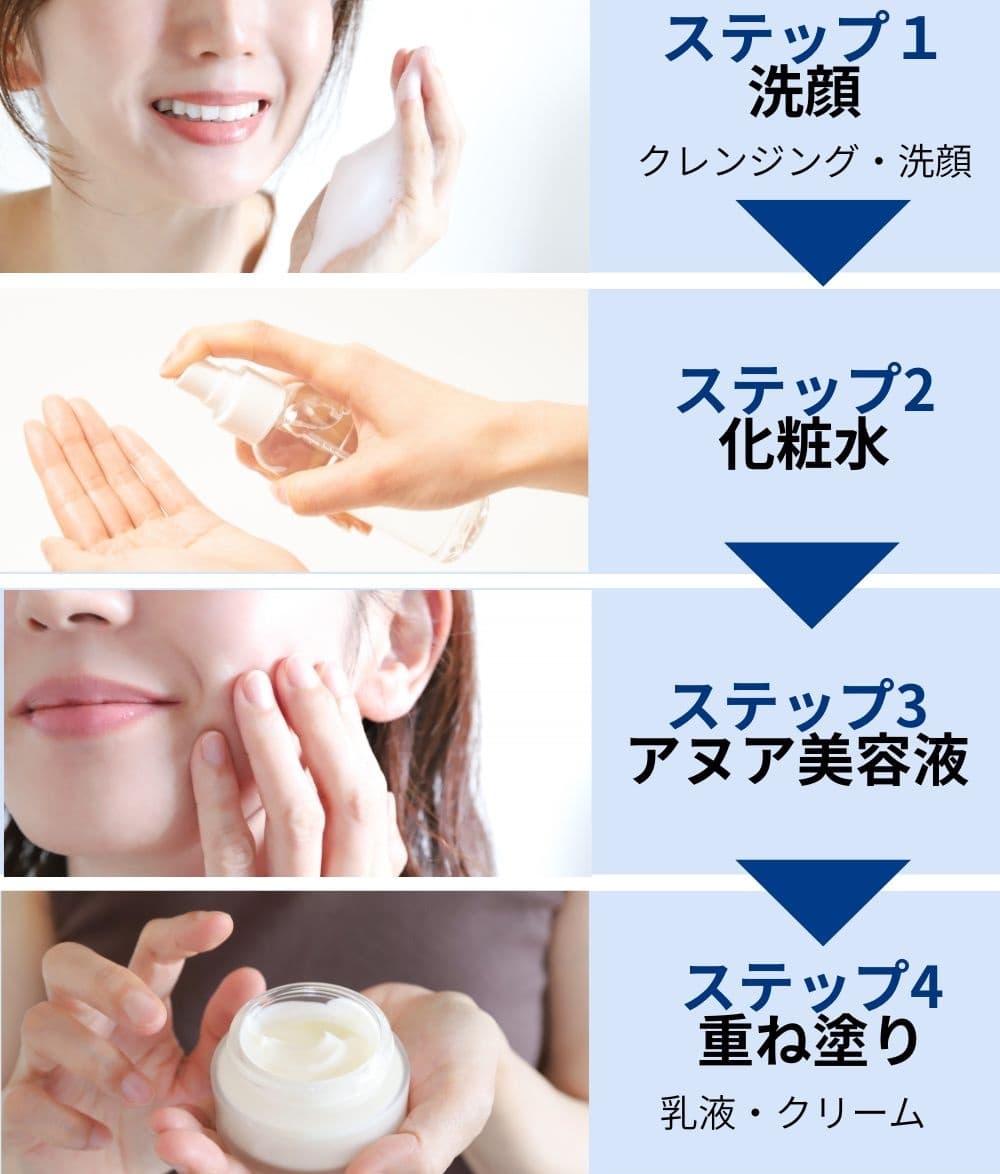 肌ケアの基本は、「軽い → 重い」の順に使うこと。