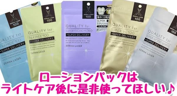 ライトケアした後は肌が化粧水をグングン吸い込んでくれるので、数種類のローションパックをライト後のケアとして使い分けていました。