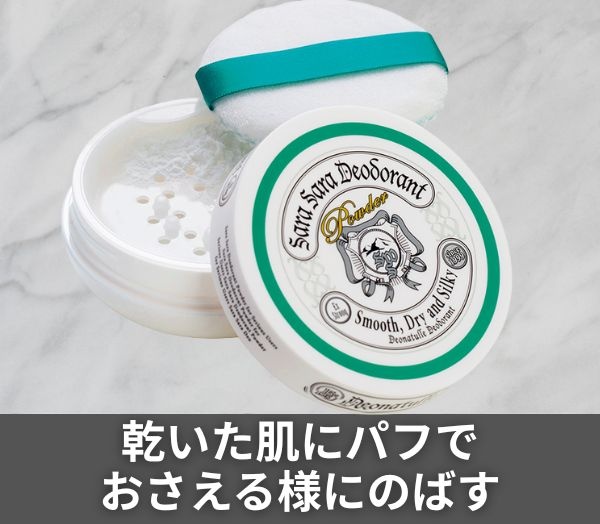 ふんわり軽いつけ心地が好きな人に人気なのが「さらさらデオドラントパウダー」です。