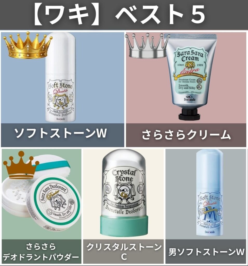 しっかりブロックしたい人はソフトストーンWやさらさらクリーム、軽いつけ心地ならさらさらデオドラントパウダー、ナチュラル志向ならクリスタルストーンC、メンズの強い汗には男性用シリーズ…というように、自分の悩みや生活スタイルに合わせて選ぶことが大切です。