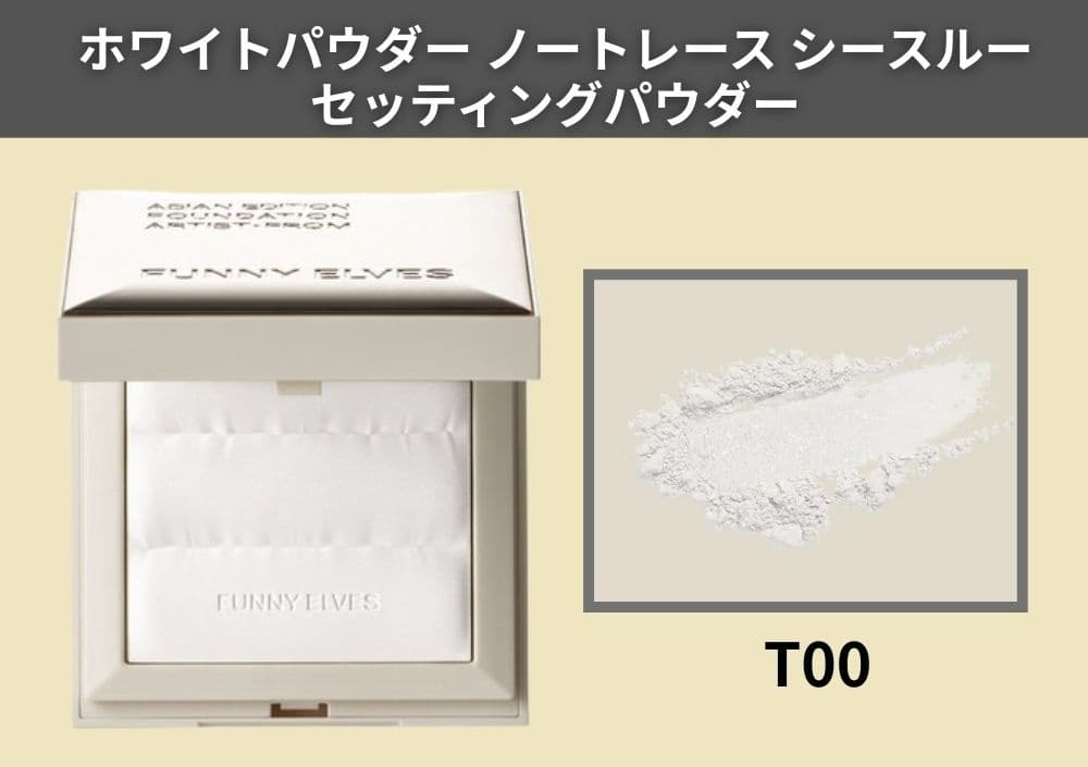 ファニーエルブスの「NU系(NU00/NU20)」はクリアタイプのパウダーで、どんなファンデーションとも相性が良く、色ムラや白浮きの心配もありません。