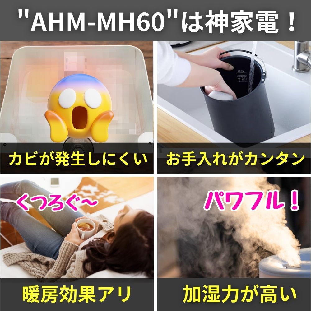 衛生的な加湿器を探している人、床置きできるパワフルな加湿器を探している人には「AHM-MH60」がおすすめなんです。