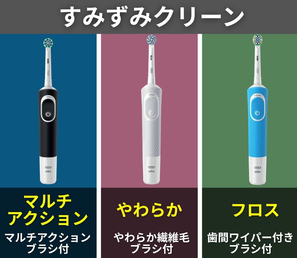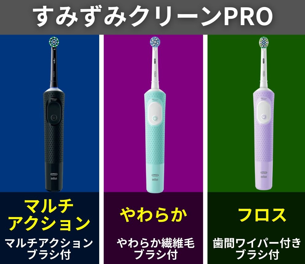 オーラルBの【すみずみクリーンシリーズ】には「すみずみクリーン」と「すみずみクリーンPRO」があります。