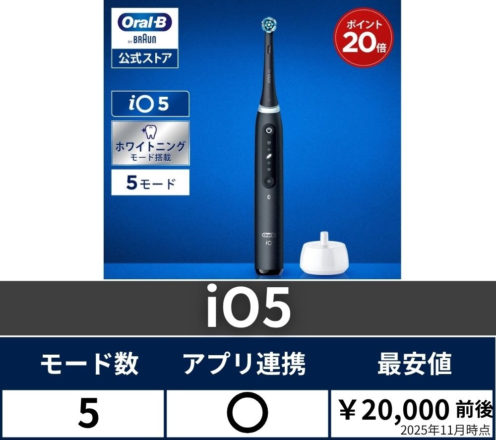 | iO5 | iO | 20,000円 | 5 | 遠心マイクロモーション | ・AIアプリ連携 | ○ |
