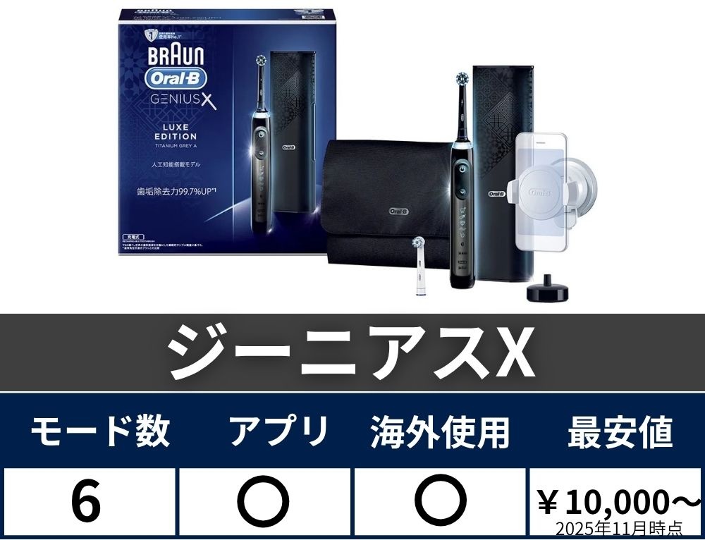 現在オーラルBのジーニアスシリーズで販売されているのは『X』『10000』『9000』3種類。