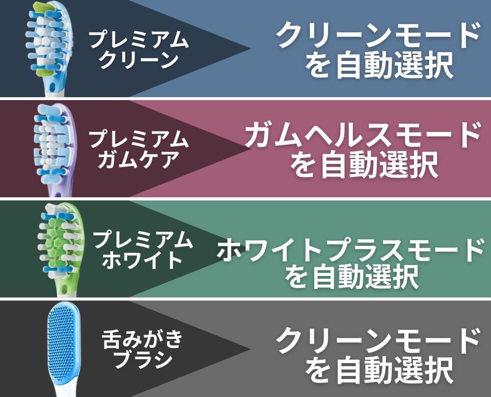 ソニッケアーのブラシには『最適なモード』がありますが、わざわざモードを切り替えなくてもブラシヘッドを認識して自動でモードの切り替えをしてくれる機能が付いています。