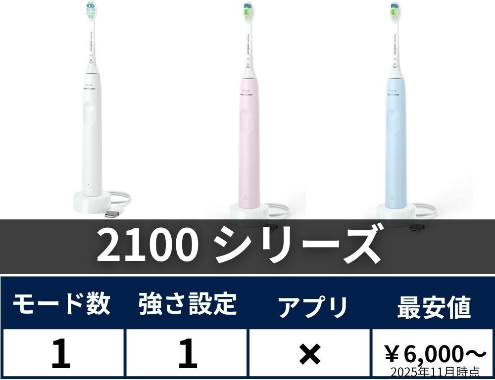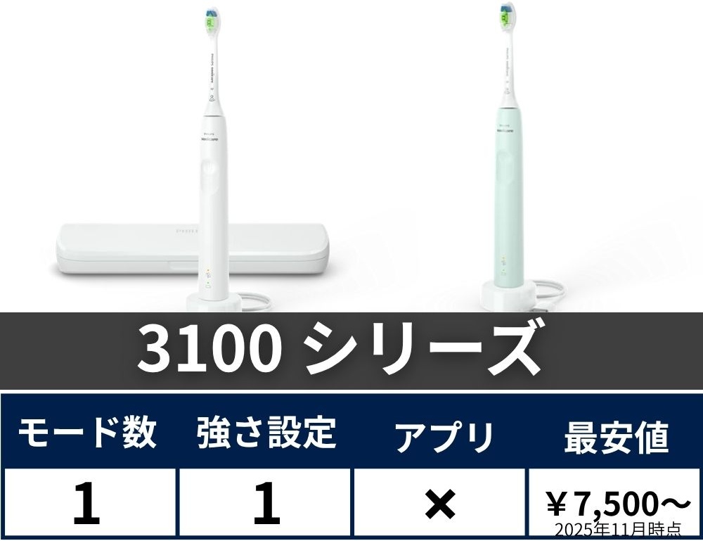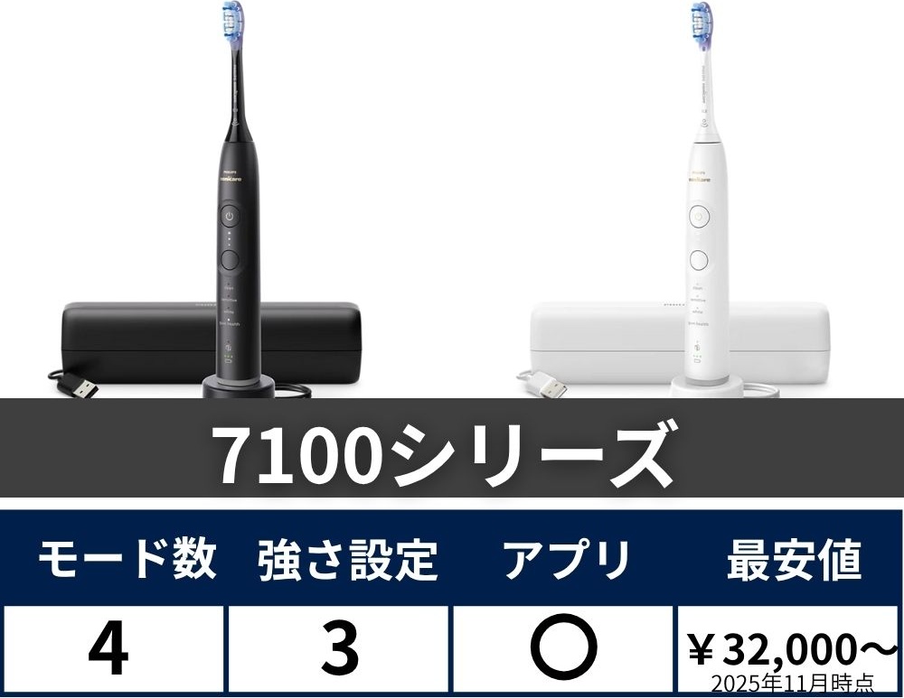 | 7100シリーズ | 4 | 3 | 〇 | 21日間 | 32,000円 前後 | 2025モデル最高峰 アプリで毎日の歯磨き記録 |
