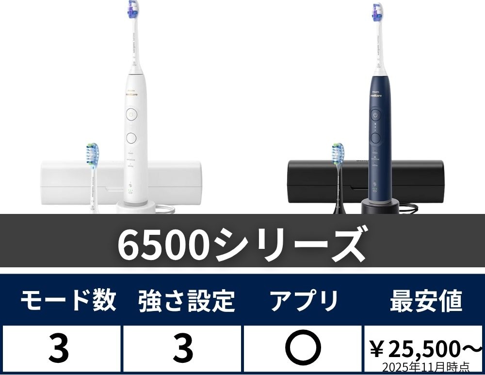 | 6500シリーズ | 3 | 3 | 〇 | 21日間 | 25,500円 前後 | 2025年発売 クリーン・ホワイト・センシティブ |