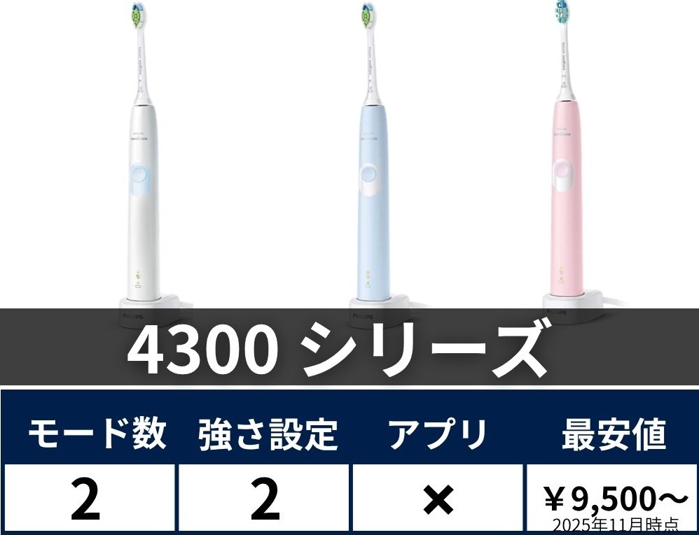 | 4300シリーズ | 2 | 2 | ✖ | 14日間 | 9,500円 前後 | ホワイト・舌みがき |