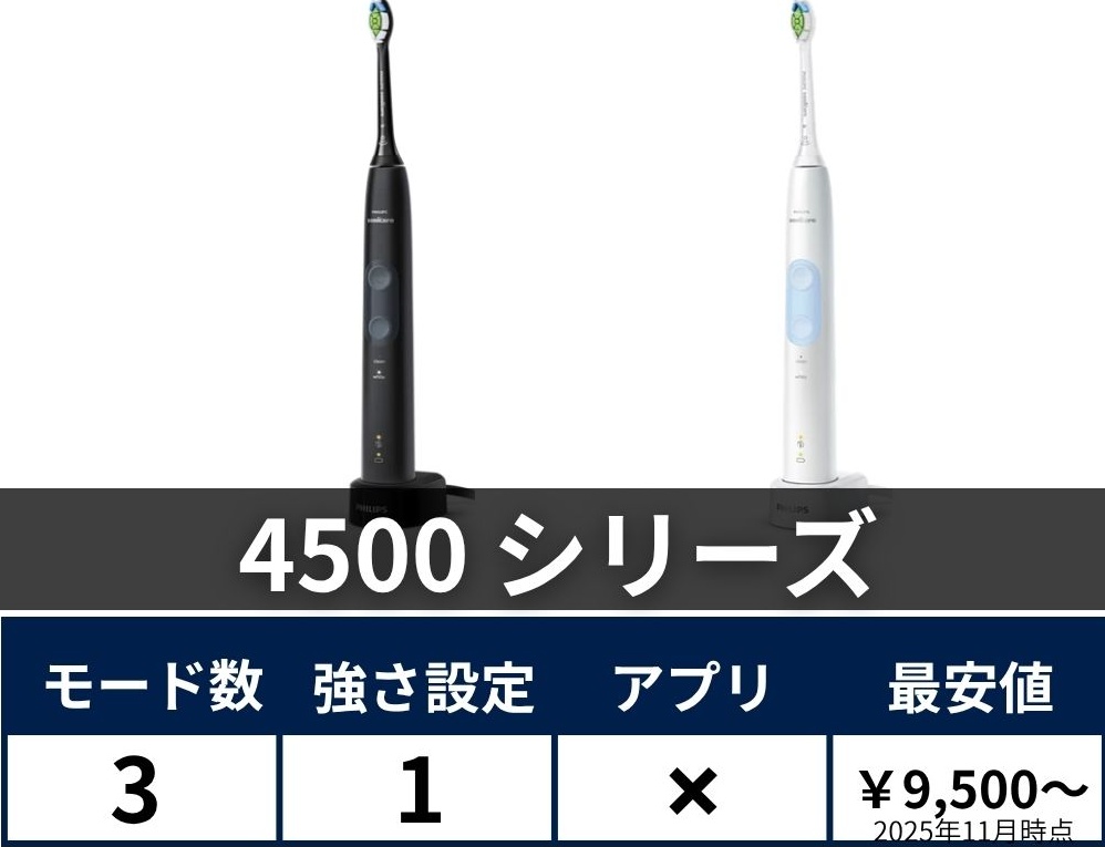 | 4500シリーズ | 3 | 1 | ✖ | 14日間 | 9,500円 前後 | クリーン・ホワイト・舌みがき |