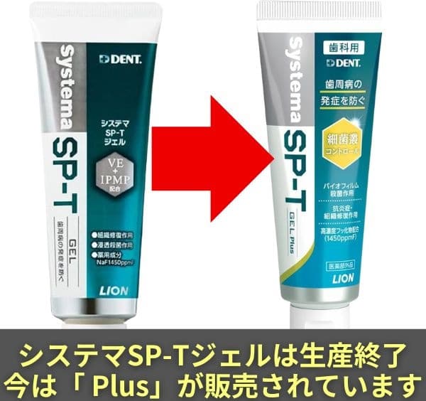 実はシステマSP-Tジェルは販売終了になっていて、現在は「Systema SP-T ジェル Plus」が販売されています。
