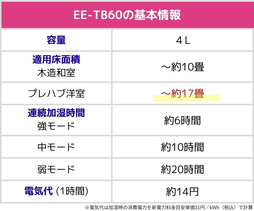 スチーム式のため電気代はやや高めですが、エアコンの温度を少し下げられる分、トータルでは節電効果もありますよ。