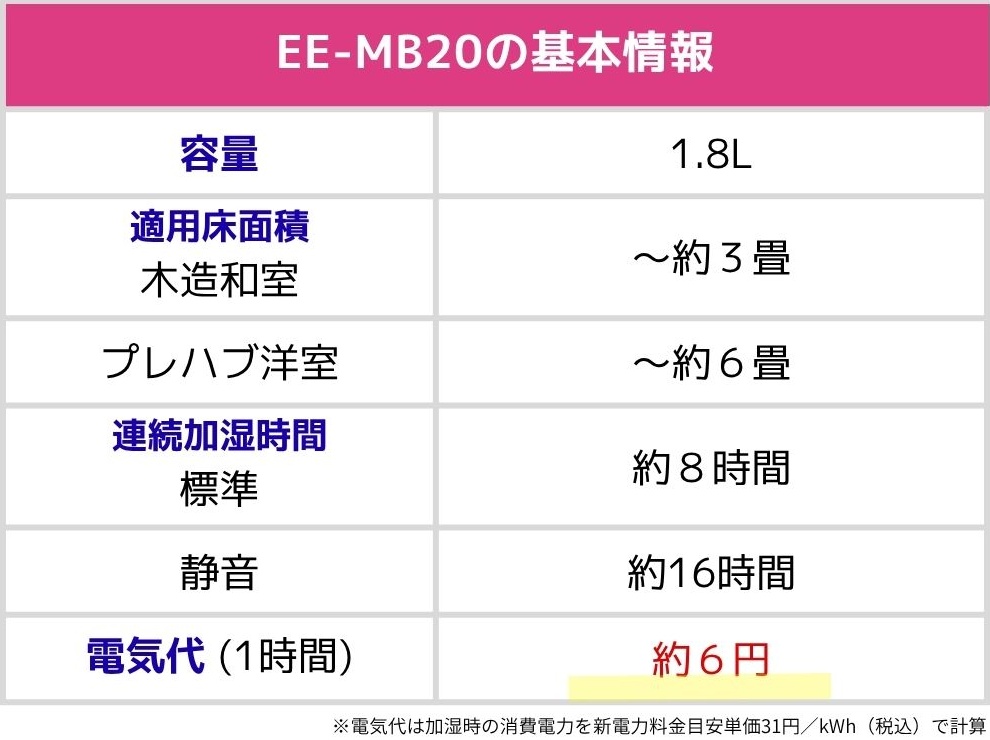 EE-MB20は、象印加湿器ラインナップの中で最もコンパクトなモデルです。