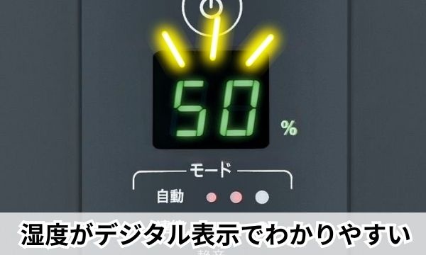 デジタル表示ではありませんが、「低湿」「適湿」「高湿」とお部屋の状態がランプで確認できます。